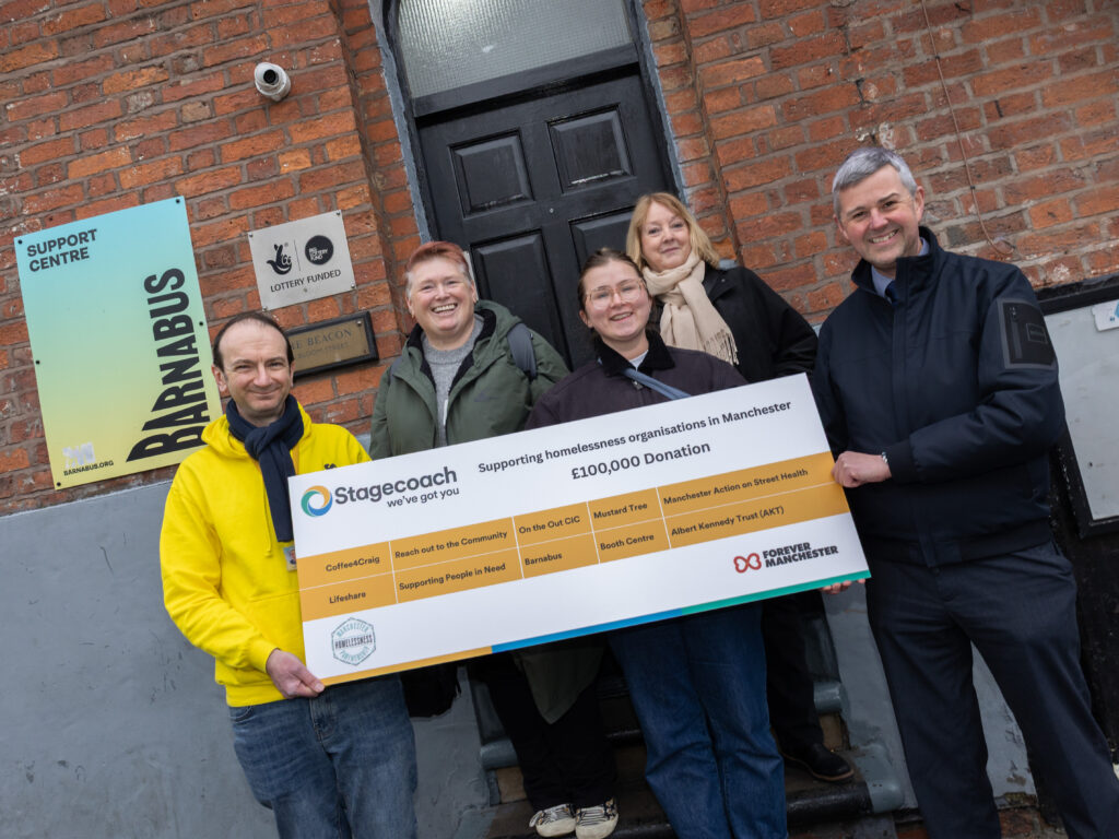 To support the fight against homelessness in the Manchester area, Stagecoach has donated £100,000 to a selection of grassroots charitable organisations.